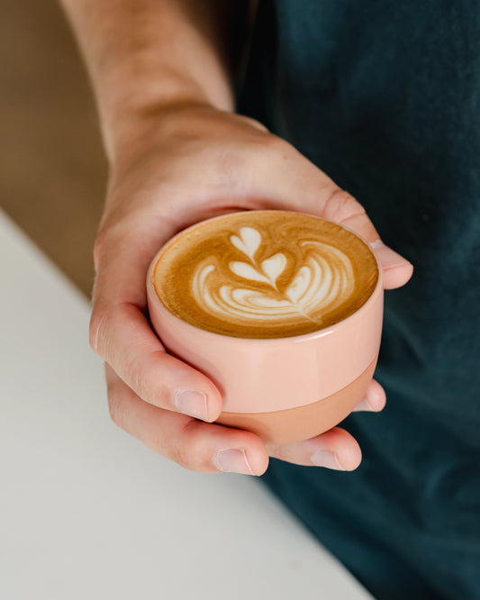 Probeer deze bonen met ons roze/terracotta kopje – de roze tinten brengen de zoete tonen in je latte sterker naar voren!