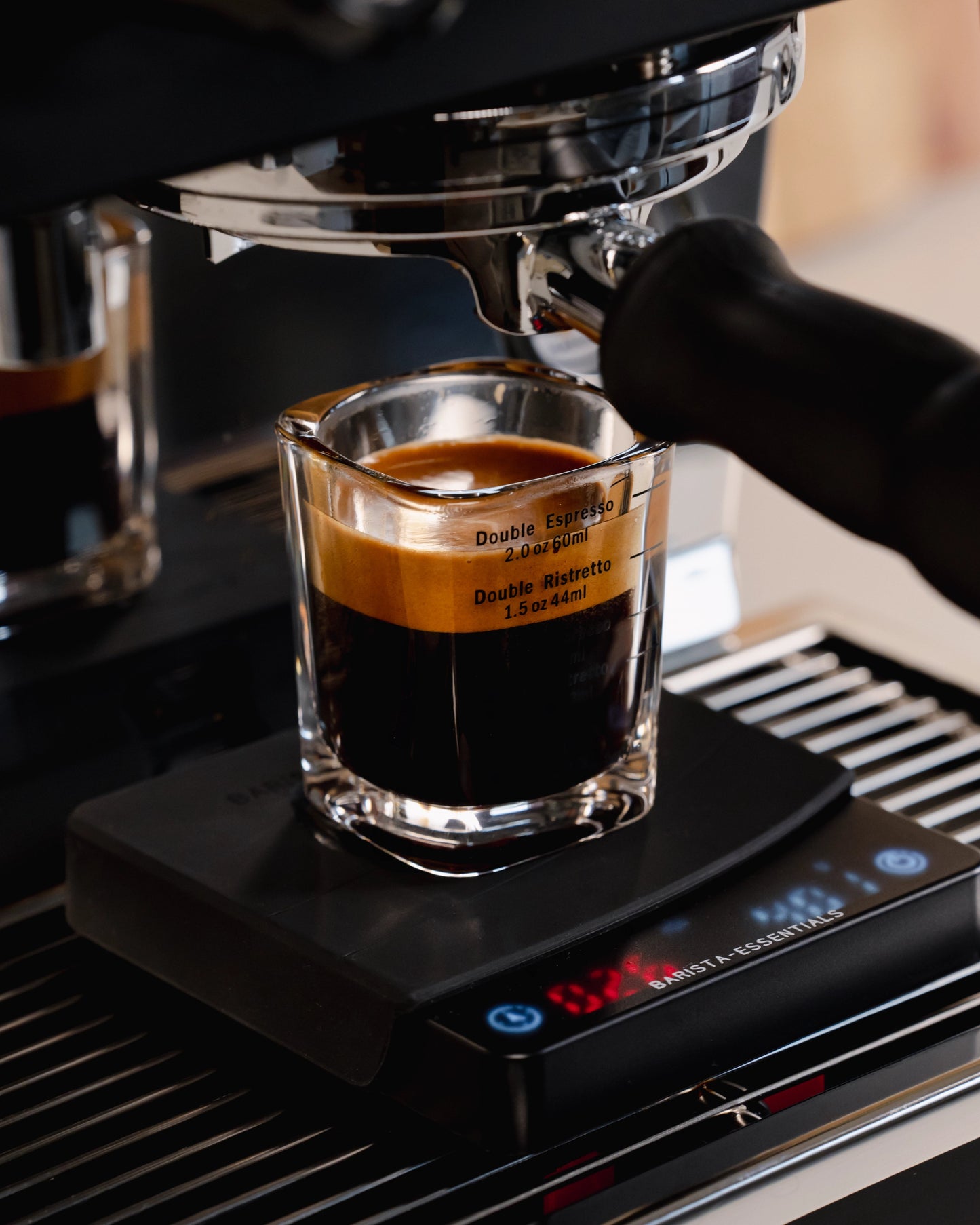 With this espresso glass, you can immediately see how your extraction is going. The crema layer is visible right away, and the measurement lines let you check whether enough coffee is running through your portafilter.
