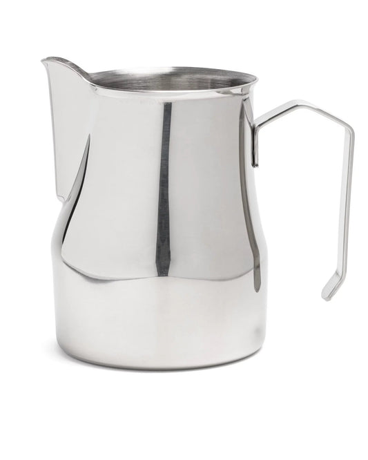 Our Italian-style milk jugs are available in black or classic silver, and in 3 sizes (350, 500, and 750ml).