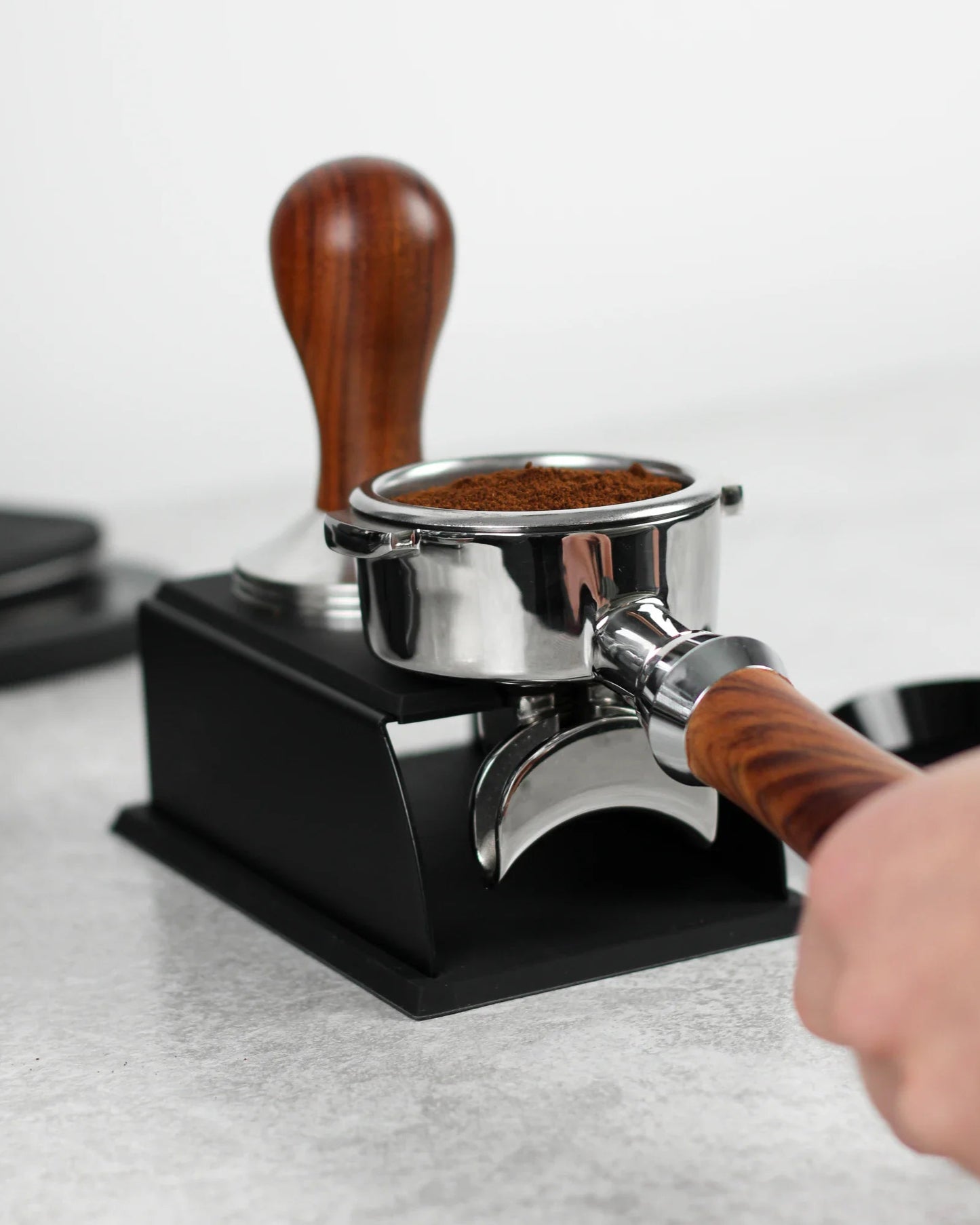 - Space for your tamper on top of the tamping station