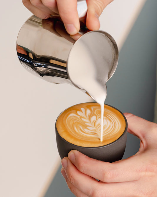 Toen ik net begon met latte art maken, gebruikte ik (Jasper) altijd maar één kannetje. Hierdoor mikte ik het dikkere melk, dat na het schuimen bovenop lag, ook zo mijn kopje in.