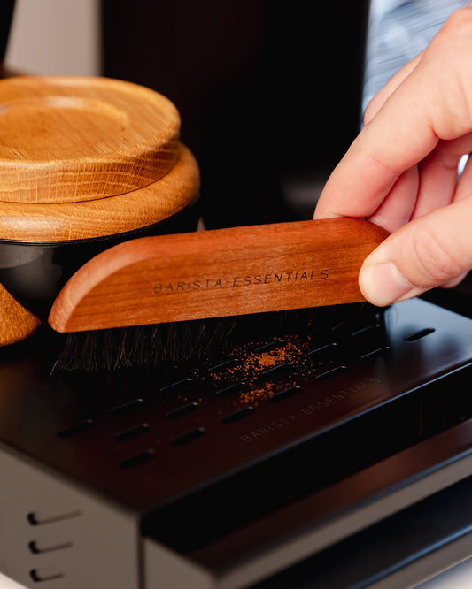 Met een koffieborstel veeg je alle gemalen koffie die naast je portafilter eindigt nog makkelijker in de lade. (Geen nodige upgrade, wel stijlvol.) Check hier onze koffieborstel.