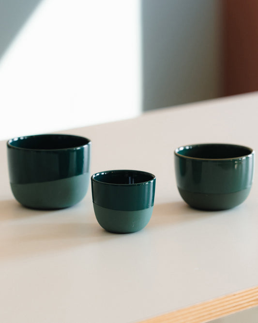 Pine Green voor complexiteit: Met een groen kopje ontdek je verborgen bloemige, kruidige en citrus nuances die je anders misschien zou missen. Combineer 'm met onze bijzondere Sulawesi bonen of Brazilië-Ethiopië blend.