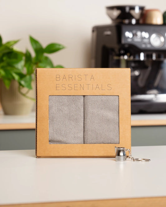 Je verrast ze namelijk niet alleen met een mooie sleutelhanger maar ook met 2 stevige microvezel barista doekjes.