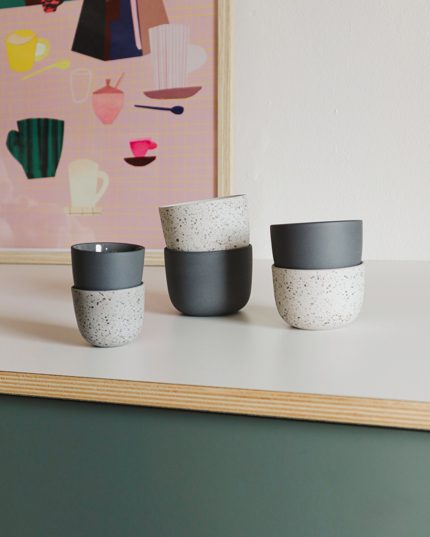 Goed om te weten: In het begin kunnen de kopjes aan de buitenkant wat ruw aanvoelen en zijn ze wat gevoeliger voor vlekken. Dit komt doordat het handgemaakt porselein is.