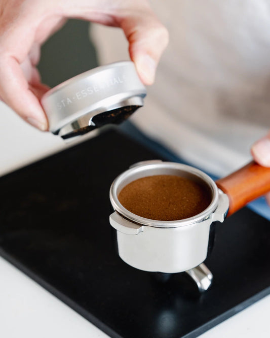 Na het verdelen is het belangrijk dat je je koffie goed aanstampt. Hierbij maken de juiste tools ook het verschil. Bekijk hier onze tampers of 2-in-1 tamper en koffieverdelers.