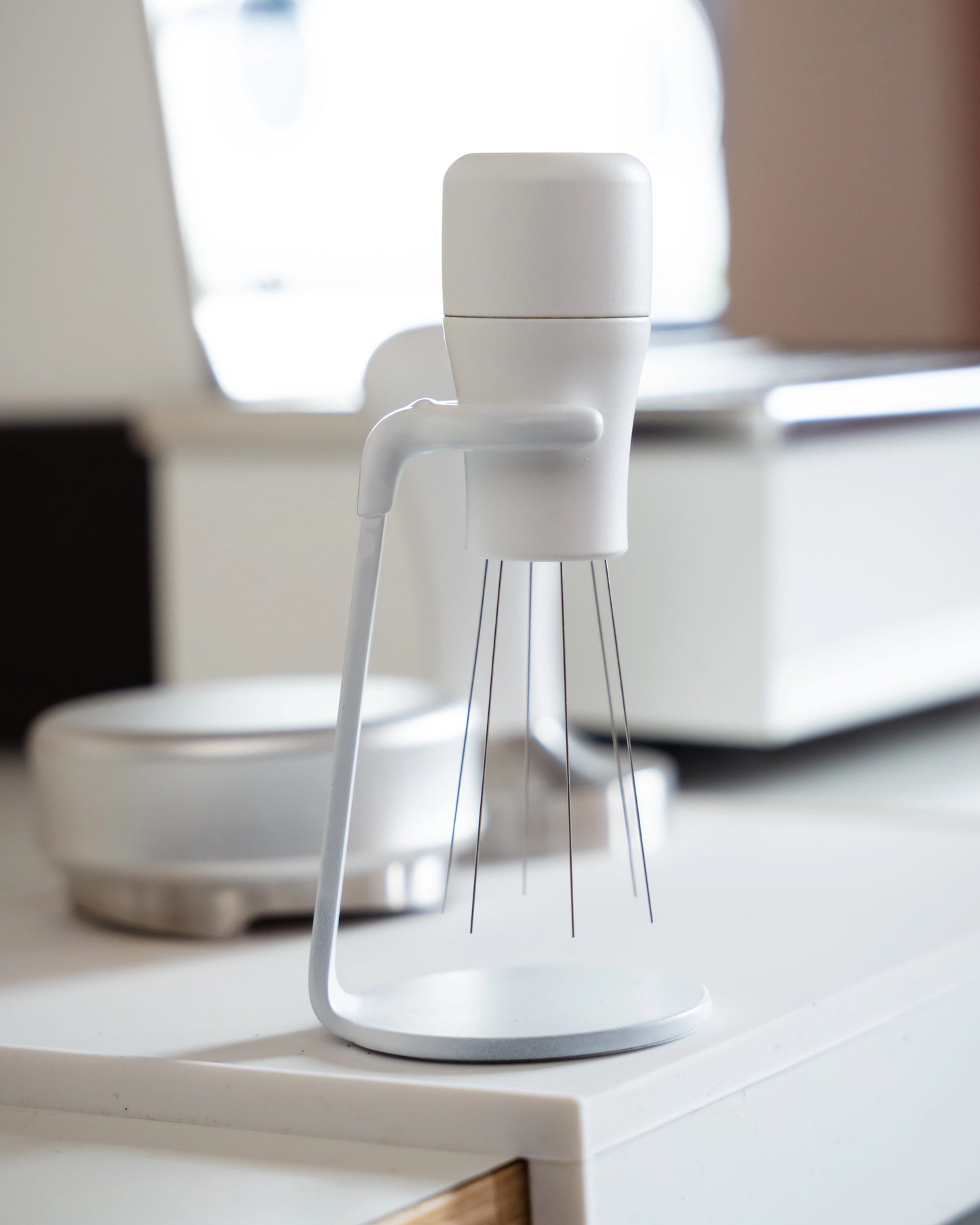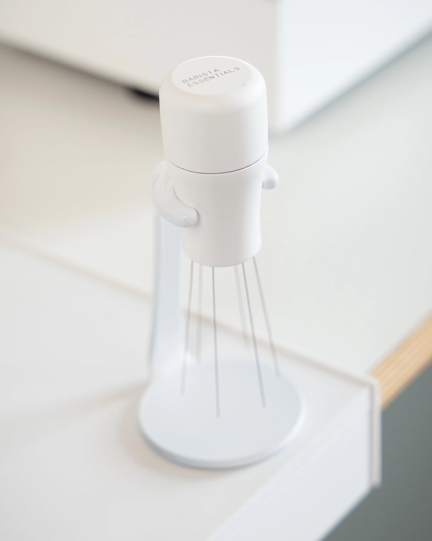 Na het malen roer je met deze tool door de koffie (zorg dat je doseerring er nog op zit). Zo breek je alle klontjes en verdeel je de koffie perfect voor het tampen. En geloof me: dit maakt meer impact dan je denkt.